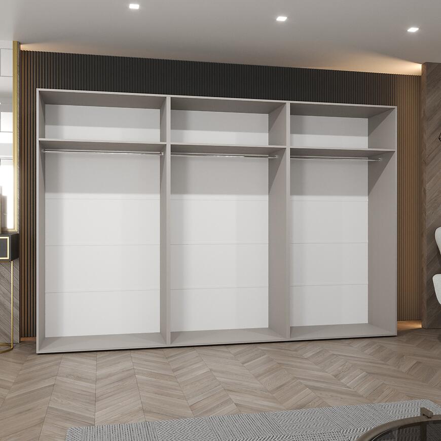 Taki układ organizacyjny sprawia, że szafa uchylna 300 cm świetnie sprawdzi się w codziennym użytkowaniu, pomagając utrzymać porządek w garderobie bez konieczności stosowania dodatkowych mebli przechowujących.