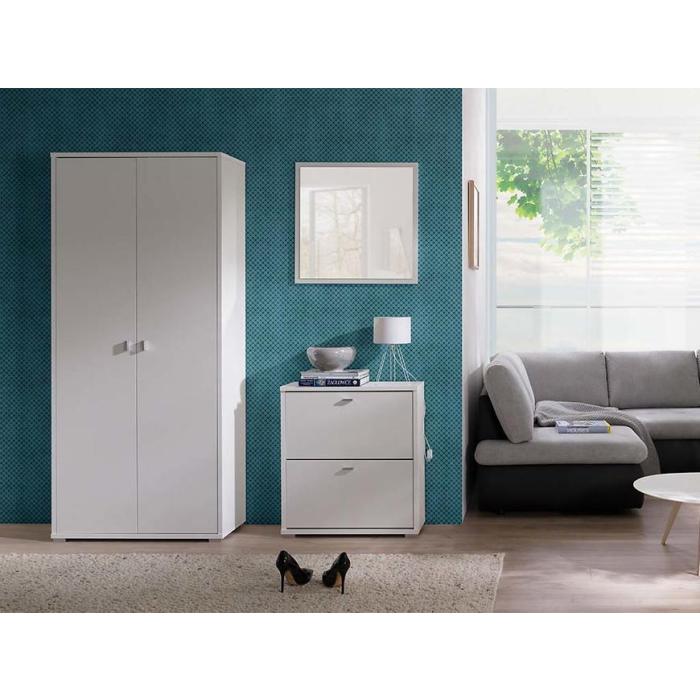 Szafa w kolorze białym to propozycja do pokoju dziennego, ale znajdzie swoje miejsce również w innym pomieszczeniu, jak na przykład - przedpokój czy garderobie. Materiał wykonania to płyta laminowana. Szafa posiada półki, szuflady oraz drążek na ubrania. Nowoczesny styl mebli wpadnie do gustu każdemu, kto poszukuje eleganckiego, klasycznego, a zarazem nowoczesnego umeblowania. Idealnie wpasuje się w większość aranżacji. Przeznaczona do samodzielnego montażu. Mebel do samodzielnego montażu.