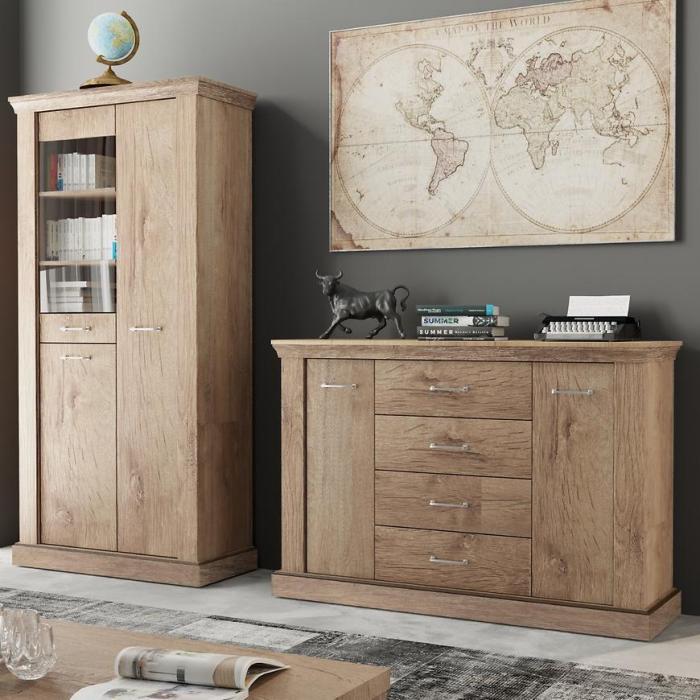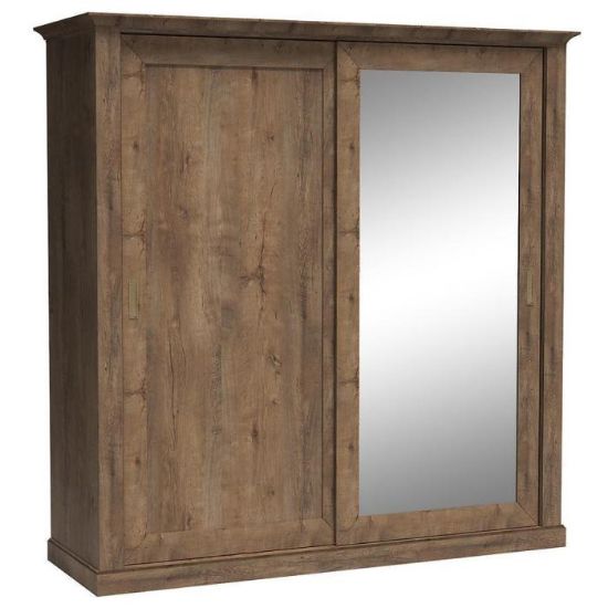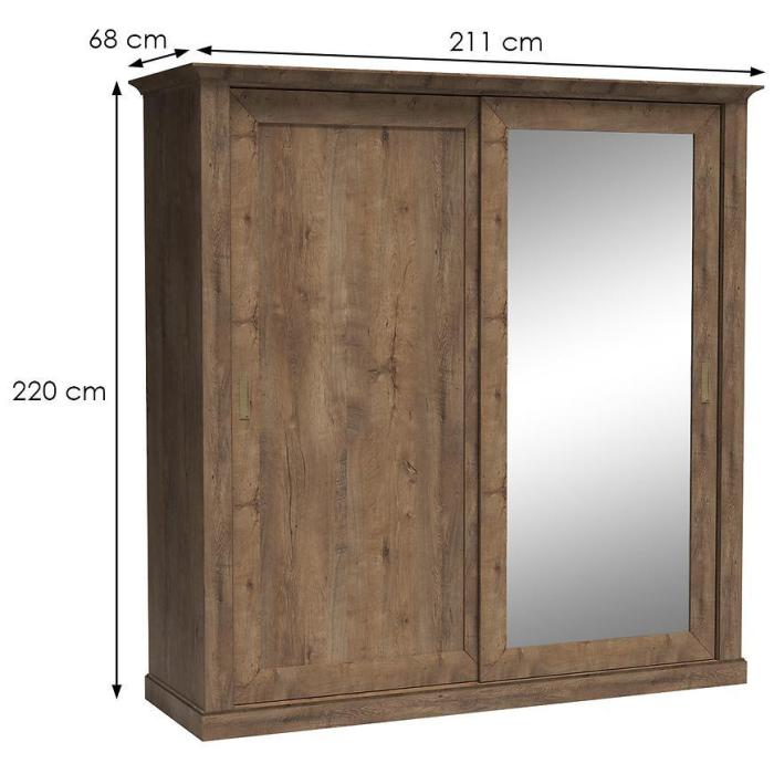 Szafa w kolorze dąb lefkas z serii Antica to doskonała propozycja do pokoju dziennego, ale znajdzie swoje miejsce również w innym pomieszczeniu, jak na przykład - przedpokój czy garderobie, sypialni. Materiał wykonania to płyta laminowana. Szafa posiada półki, drążek na ubrania oraz szuflady. Duża szafa posiada również lustro, które sprawi, że pomieszczenie stanie się optycznie większe. Mebel będzie świetnym miejscem do wieszania ubrań, na buty lub inne domowe tekstylia. Nowoczesny styl mebli wpadnie do gustu każdemu, kto poszukuje eleganckiego, klasycznego, a zarazem nowoczesnego umeblowania. Idealnie wpasuje się w większość aranżacji. Szafa przeznaczona do samodzielnego montażu.