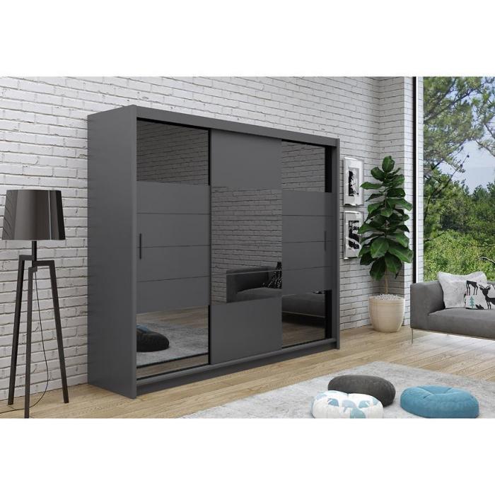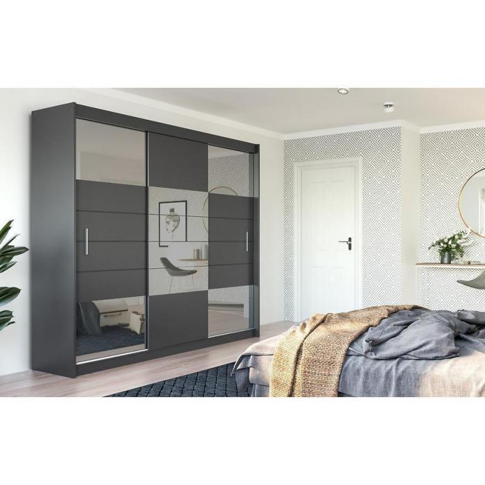 Szafa w kolorze grafit z kolekcji Aruba to doskonała propozycja do pokoju dziennego, ale znajdzie swoje miejsce również w innym pomieszczeniu, jak na przykład - przedpokój czy garderobie, sypialni. Materiał wykonania to płyta laminowana. Szafa posiada półki, drążek na ubrania oraz szuflady. Duża szafa posiada również lustro, które sprawi, że pomieszczenie stanie się optycznie większe. Mebel będzie świetnym miejscem do wieszania ubrań, na buty lub inne domowe tekstylia. Nowoczesny styl mebli wpadnie do gustu każdemu, kto poszukuje eleganckiego, klasycznego, a zarazem nowoczesnego umeblowania. Idealnie wpasuje się w większość aranżacji. Szafa przeznaczona do samodzielnego montażu.