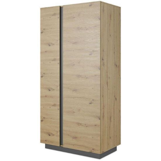 Szafa w kolorze dąb artisan z kolekcji Aston to doskonała propozycja do pokoju dziennego, ale znajdzie swoje miejsce również w innym pomieszczeniu, jak na przykład - przedpokój czy garderobie, sypialni. Materiał wykonania to płyta laminowana 16 mm z grafitowymi wstawki na frontach. Mebel będzie świetnym miejscem do wieszania ubrań, na buty lub inne domowe tekstylia. Nowoczesny styl mebli wpadnie do gustu każdemu, kto poszukuje eleganckiego, klasycznego, a zarazem nowoczesnego umeblowania. Idealnie wpasuje się w większość aranżacji. Szafa przeznaczona do samodzielnego montażu.