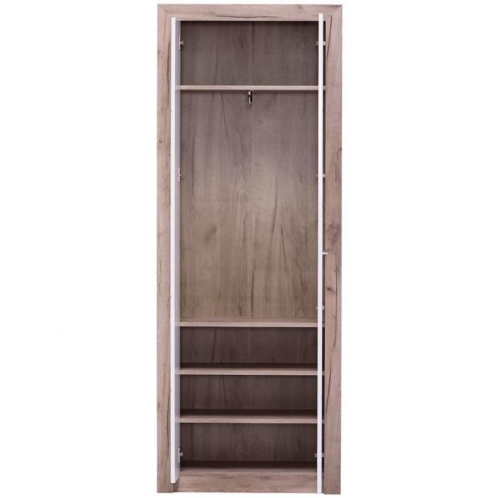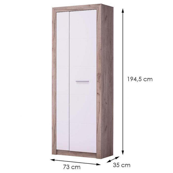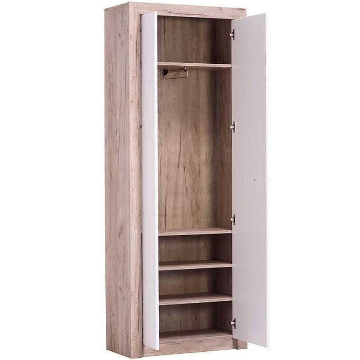Szafa z drzwiami uchylnymi Astor to doskonały wybór do garderoby, przedpokoju, salonu czy sypialni. Kolor frontów i korpusu sprawiają, że wpasuje się w większość aranżacji. Jej wnętrze jest pojemne i pomieści zarówno ubrania jak i inne akcesoria. Szafa jest 2-drzwiowa.