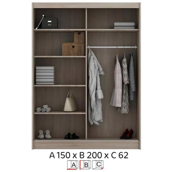 Szafa z drzwiami przesuwnymi Asturia to doskonały wybór do garderoby, przedpokoju, salonu czy sypialni. Kolor frontów i korpusu sprawiają, że wpasuje się w większość aranżacji. Jej wnętrze jest pojemne i pomieści zarówno ubrania jak i inne akcesoria. Szafa jest 2-drzwiowa.