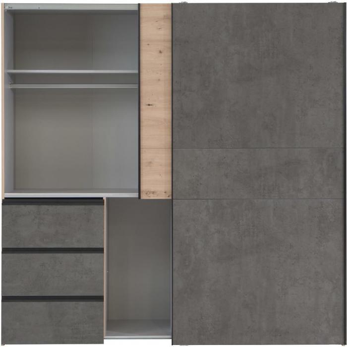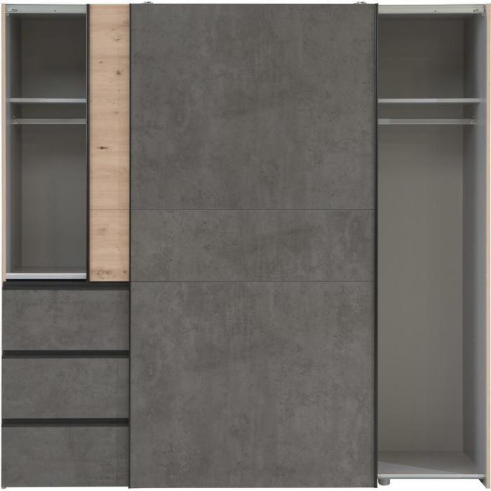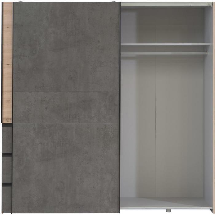 Szafa z drzwiami przesuwnymi Winn 2 to doskonały wybór do garderoby, przedpokoju, salonu czy sypialni. Kolor frontów i korpusu sprawiają, że wpasuje się w większość aranżacji. Jej wnętrze jest pojemne i pomieści zarówno ubrania jak i inne akcesoria. Szafa jest kilkudrzwiowa.