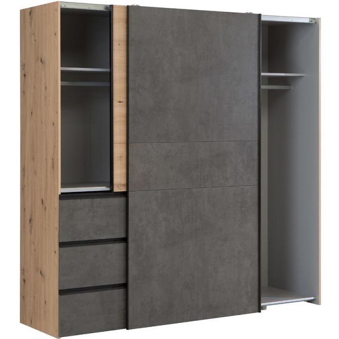 Wygląd szafy Winn 2 zachwyci każdego zwolennika nowoczesnego, a zarazem ciekawego stylu. Szafa posiada wystarczającą ilość miejsca na ubrania oraz na inne przedmioty. Jest to niezbędny element wyposażenia w każdym domu, garderobie czy przedpokoju. Materiał wykonania to płyta wiórowa laminowana.
