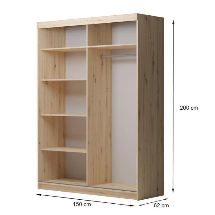 Szafa w kolorze dąb artisan/biały z kolekcji Asturia to doskonała propozycja do pokoju dziennego, ale znajdzie swoje miejsce również w innym pomieszczeniu, jak na przykład - przedpokój czy garderobie, sypialni. Materiał wykonania to płyta laminowana. Szafa posiada półki, drążek na ubrania. Duża szafa posiada również lustro, które sprawi, że pomieszczenie stanie się optycznie większe. Mebel będzie świetnym miejscem do wieszania ubrań, na buty lub inne domowe tekstylia. Nowoczesny styl mebli wpadnie do gustu każdemu, kto poszukuje eleganckiego, klasycznego, a zarazem nowoczesnego umeblowania. Idealnie wpasuje się w większość aranżacji. Szafa przeznaczona do samodzielnego montażu.