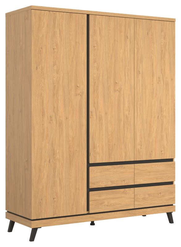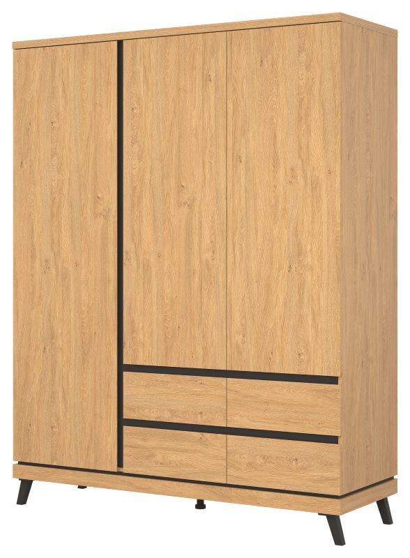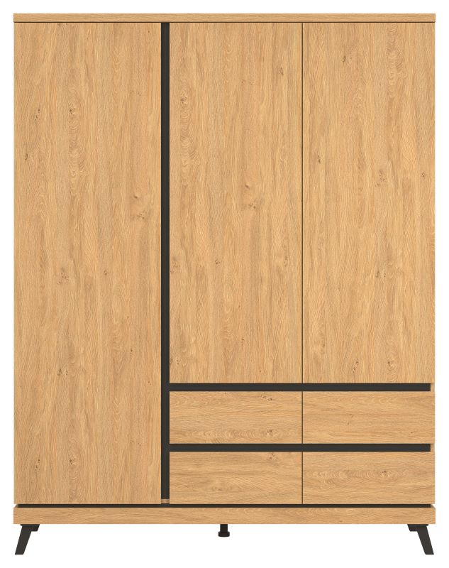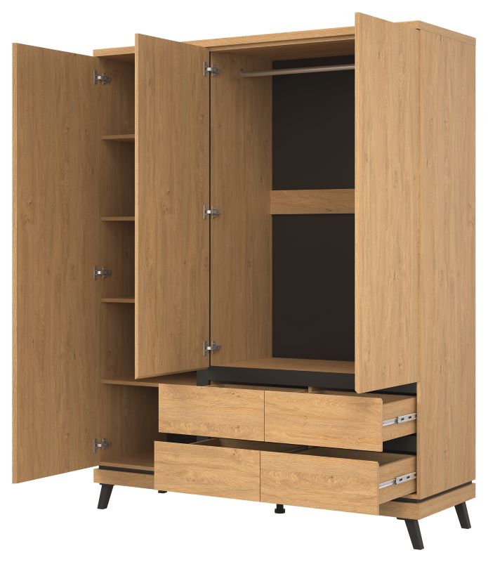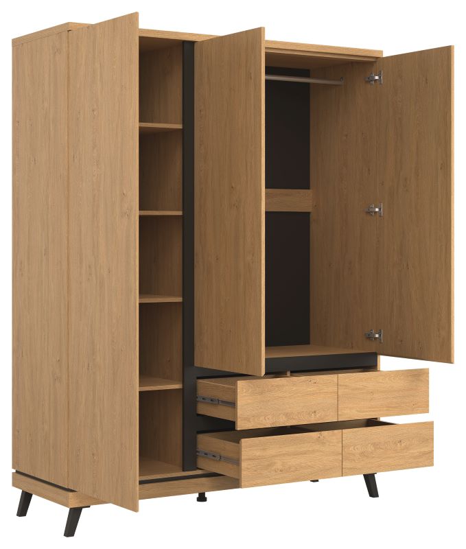 Szafa ATE AT13 to idealny element wyposażenia sypialni, garderoby czy przedpokoju. Mebel posiada trzy drążki, na których uporządkujesz codzienne stroje, a cztery szuflady zapewnią miejsce do przechowywania galanterii i bielizny. Szafę można doposażyć w dodatkowe półki ATE AT14, które ułatwią uporządkowanie elementów garderoby.