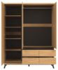 Kolekcja ATE utrzymana jest w modnym kolorze dąb kamienny, który w połączeniu z czarnymi wstawkami zapewnia kontrastowe połączenie, które przyciąga uwagę i nadaje pomieszczeniu elegancji. Mebel otwiera się za pomocą specjalnie wyprofilowanych żłobień na obrzeżu frontu.