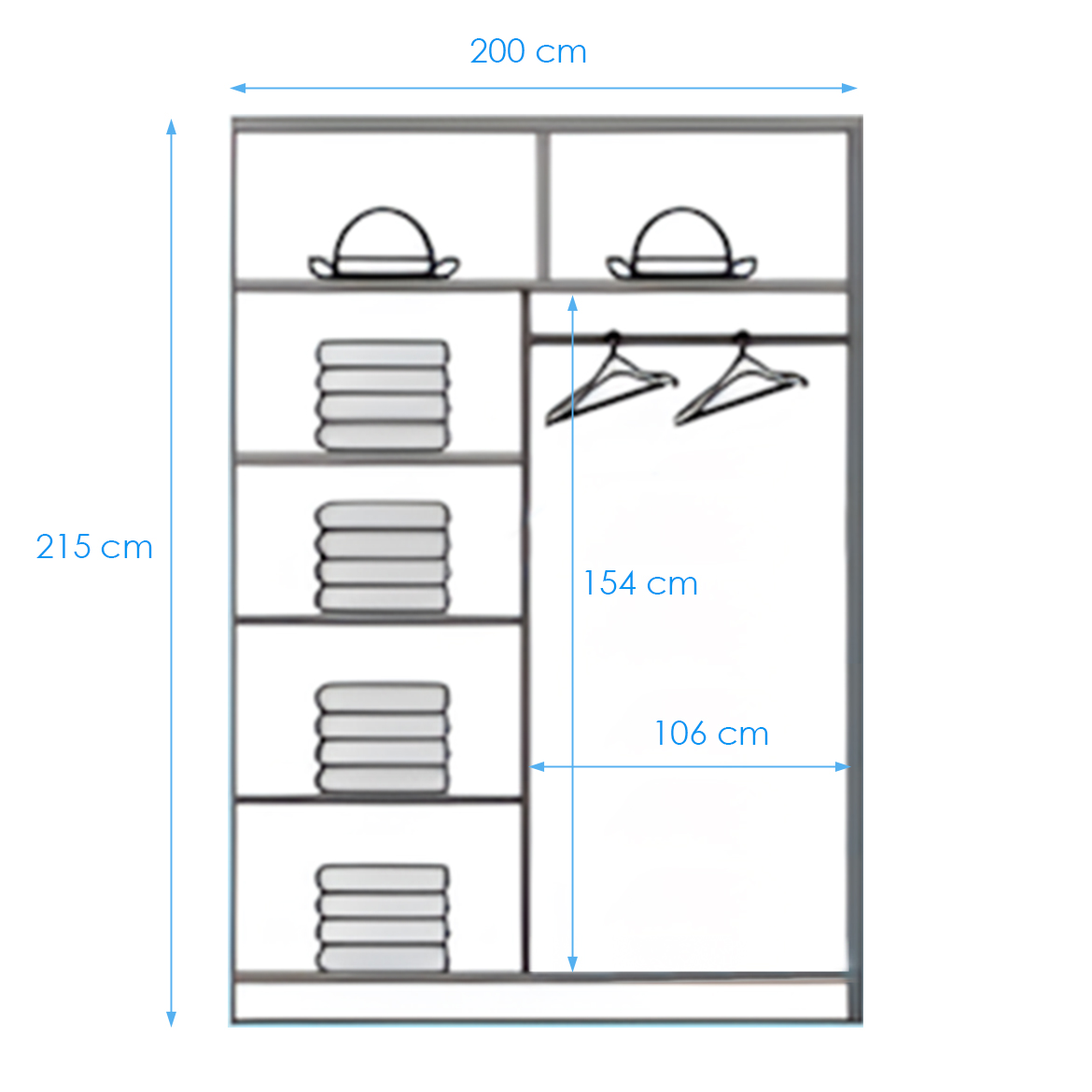 Solidna konstrukcja szafy oparta jest na płycie wiórowej laminowanej, co gwarantuje wytrzymałość i długowieczność mebla. Powierzchnia płyty jest odporna na zarysowania i łatwa w utrzymaniu czystości, dzięki czemu szafa będzie wyglądać doskonale przez długie lata. Wnętrze szafy zostało zaprojektowane z myślą o jak największej funkcjonalności . To doskonałe rozwiązanie dla osób, które cenią sobie porządek i łatwy dostęp do wszystkich rzeczy.