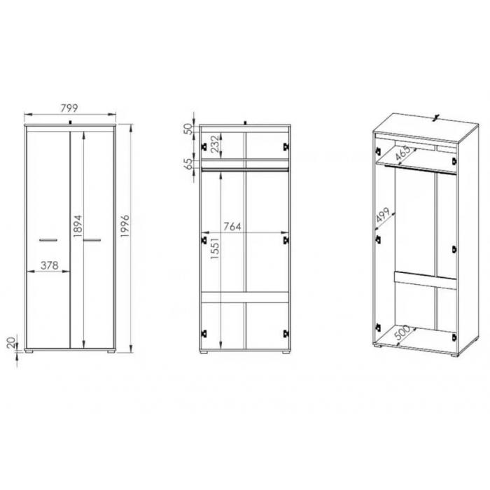 Szafa Avo 02 Sonoma o wymiarach 200 cm wysokości, 80 cm szerokości i 50 cm głębokości.
