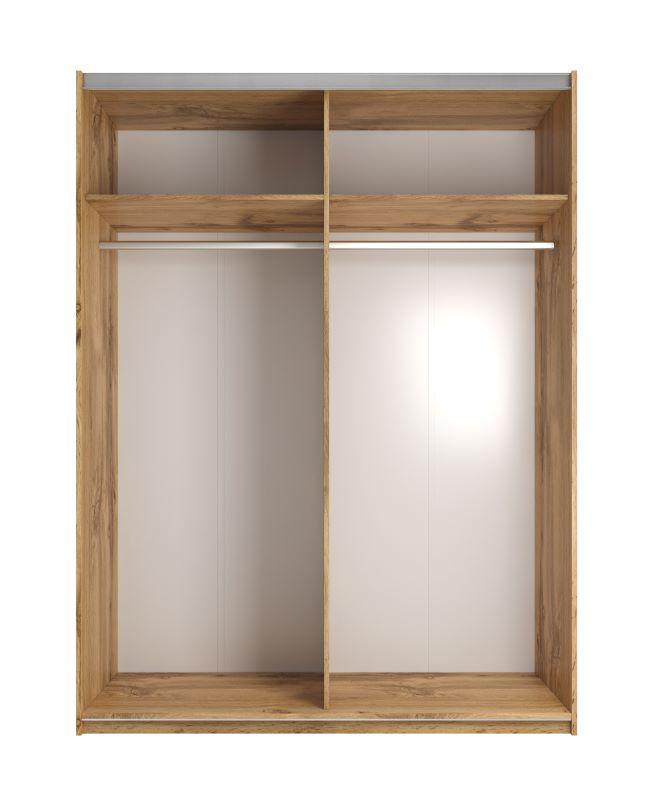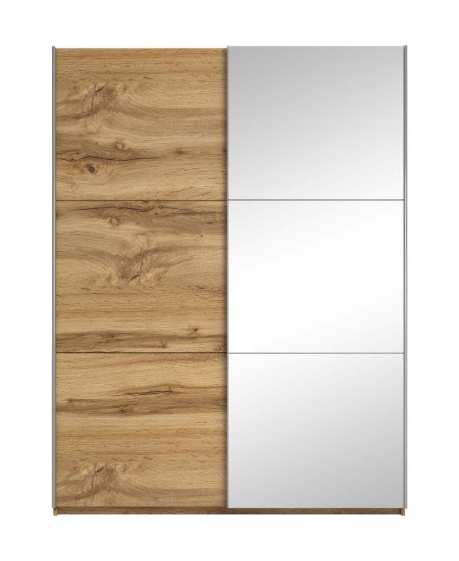 Szafa Avola 150 dąb wotan/lustro to szafa dwudrzwiowa z lustrem. Drzwi przesuwane na prowadnicach stalowych. Fronty i korpus wykonane z płyty laminowanej, tył szafy (plecy) wykonane z płyty HDF. Produkt w paczkach do samodzielnego montażu.