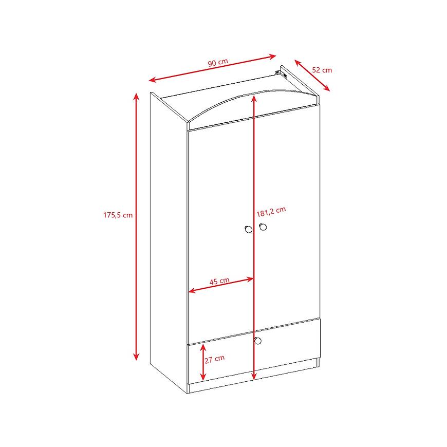 Wnętrze szafy Babydreams zostało zaprojektowane z myślą o funkcjonalności. Znajdująca się szuflada oraz trzy półki umożliwiają zorganizowane przechowywanie ubrań, zabawek czy innych drobiazgów. Dodatkowo, drążek pozwala na porządne powieszenie ubrań, co ułatwia utrzymanie porządku w garderobie dziecięcej.