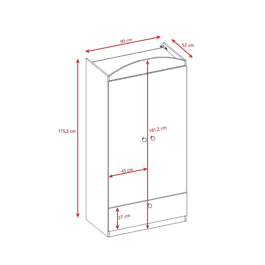 Wnętrze szafy Babydreams zostało zaprojektowane z myślą o funkcjonalności. Znajdująca się szuflada oraz trzy półki umożliwiają zorganizowane przechowywanie ubrań, zabawek czy innych drobiazgów. Dodatkowo, drążek pozwala na porządne powieszenie ubrań, co ułatwia utrzymanie porządku w garderobie dziecięcej.