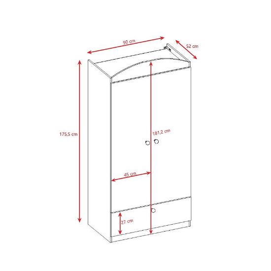 Wnętrze szafy Babydreams zostało zaprojektowane z myślą o funkcjonalności. Znajdująca się szuflada oraz trzy półki umożliwiają zorganizowane przechowywanie ubrań, zabawek czy innych drobiazgów. Dodatkowo, drążek pozwala na porządne powieszenie ubrań, co ułatwia utrzymanie porządku w garderobie dziecięcej.
