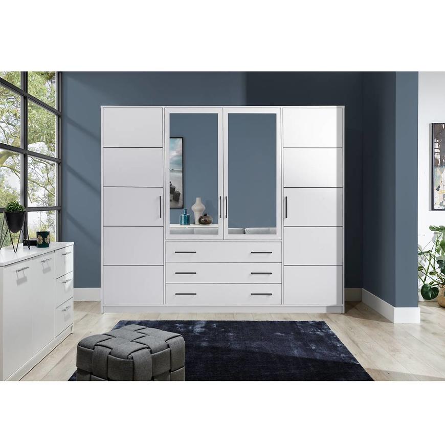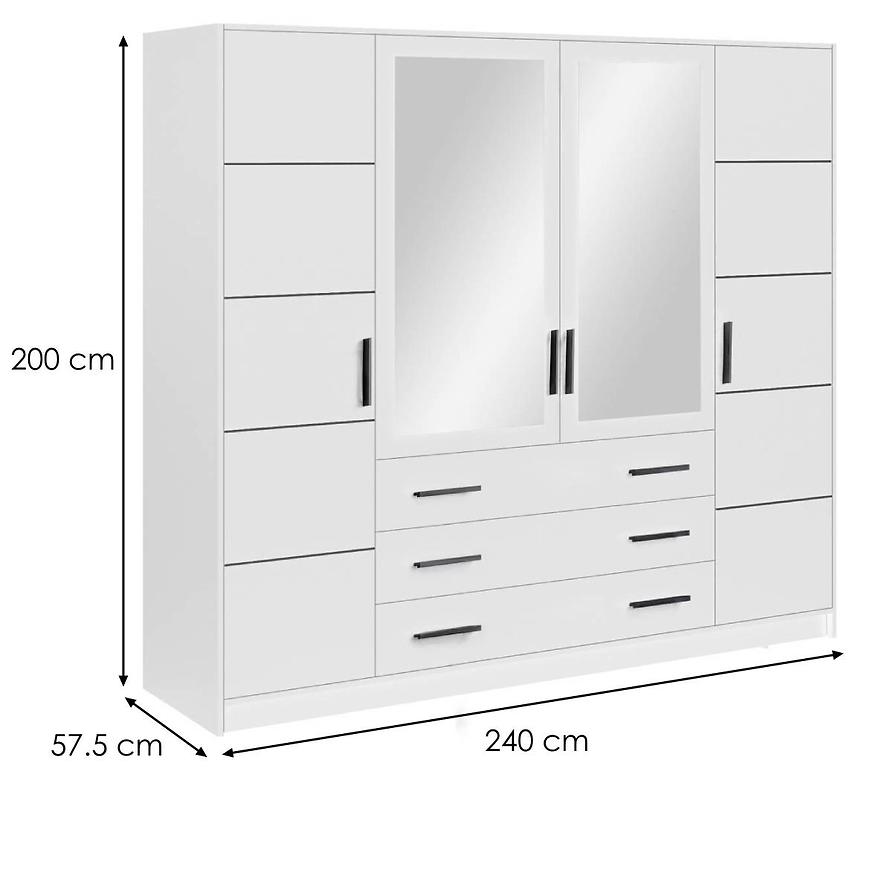 Szafa wyposażona jest w cztery klasyczne drzwi, które ułatwiają dostęp do przechowywanych w niej przedmiotów, sprawiając, że organizacja przestrzeni staje się prosta i intuicyjna. Dodatkowym atutem tego mebla jest wbudowane lustro, które nie tylko optycznie powiększa przestrzeń, ale także jest niezwykle praktyczne w codziennym użytkowaniu.