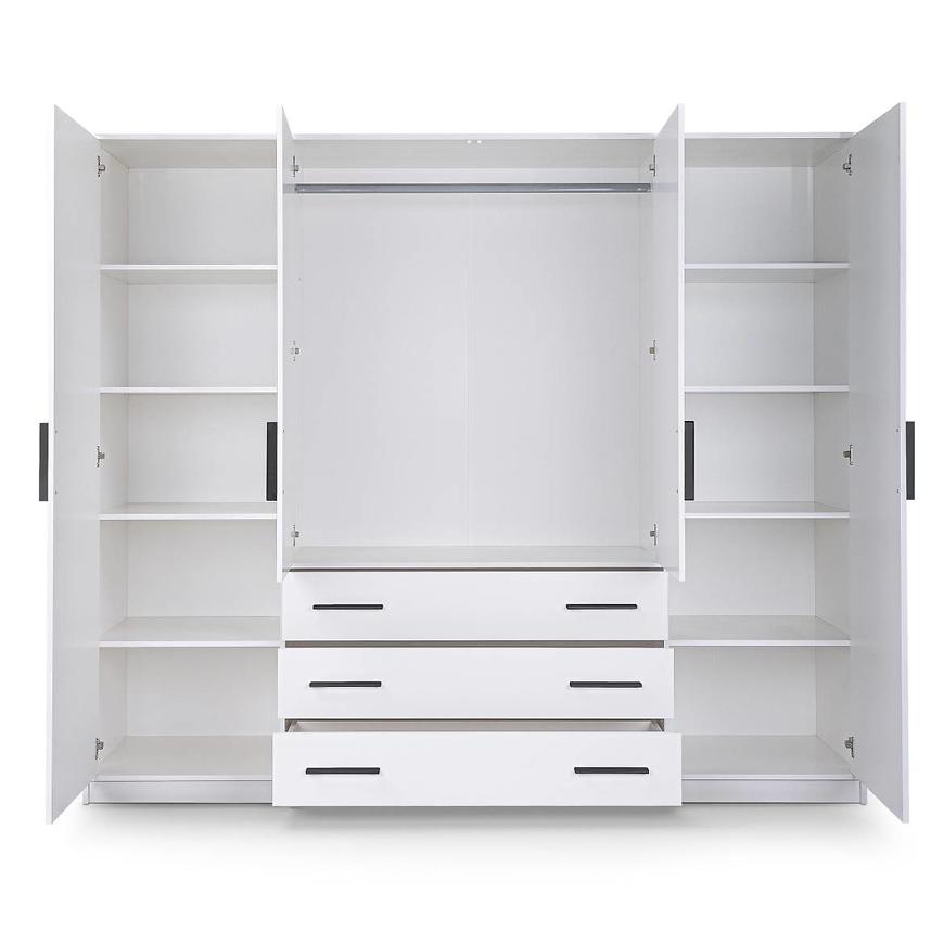 Szafa Bali 240 w kolorze białym to wyjątkowy mebel, który łączy w sobie elegancję klasycznego designu z funkcjonalnością, idealnie wpisując się w potrzeby nowoczesnych wnętrz. Wykonana z wysokiej jakości płyty wiórowej laminowanej, gwarantuje trwałość i odporność na codzienne użytkowanie. Jej matowe wykończenie dodaje subtelnego charakteru i wprowadza do pomieszczenia poczucie spokoju oraz harmonii.