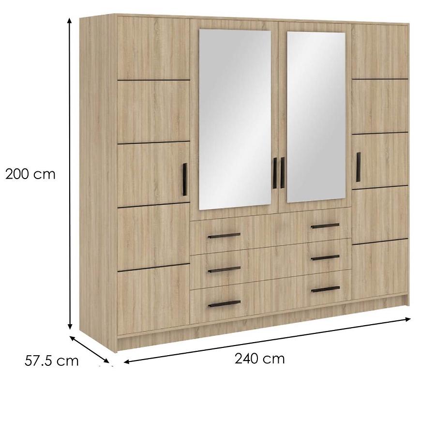 Szafa wyposażona jest w cztery klasyczne drzwi, które ułatwiają dostęp do przechowywanych w niej przedmiotów, sprawiając, że organizacja przestrzeni staje się prosta i intuicyjna. Dodatkowym atutem tego mebla jest wbudowane lustro, które nie tylko optycznie powiększa przestrzeń, ale także jest niezwykle praktyczne w codziennym użytkowaniu.