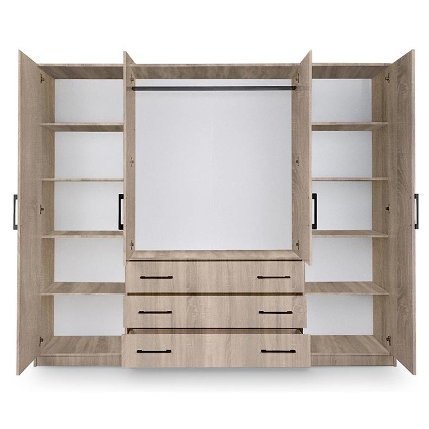 Szafa Bali 240 w kolorze dąb sonoma to wyjątkowy mebel, który łączy w sobie elegancję klasycznego designu z funkcjonalnością, idealnie wpisując się w potrzeby nowoczesnych wnętrz. Wykonana z wysokiej jakości płyty wiórowej laminowanej, gwarantuje trwałość i odporność na codzienne użytkowanie. Jej matowe wykończenie dodaje subtelnego charakteru i wprowadza do pomieszczenia poczucie spokoju oraz harmonii.