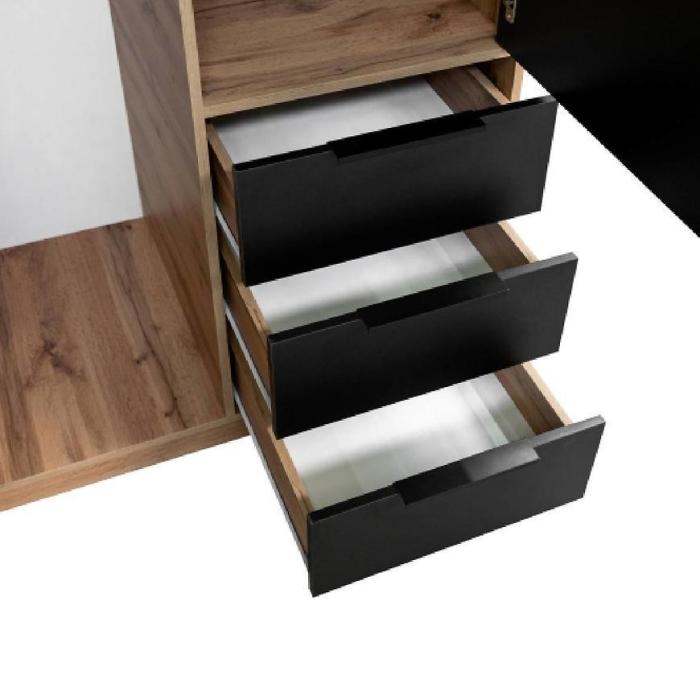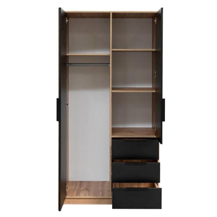 Wygląd szafy Bali zachwyci każdego zwolennika nowoczesnego, a zarazem uniwersalnego stylu. Szafa posiada wystarczającą ilość miejsca na ubrania oraz na inne przedmioty. Jest to niezbędny element wyposażenia w każdym domu, garderobie czy przedpokoju. Materiał wykonania to płyta wiórowa laminowana.