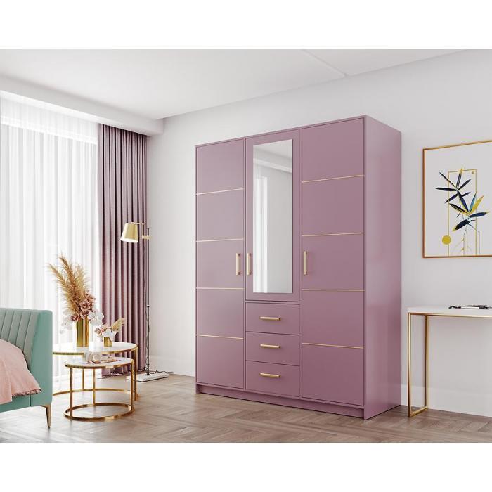 Szafa w kolorze śliwka z kolekcji Bali to doskonała propozycja do pokoju dziennego, ale znajdzie swoje miejsce również w innym pomieszczeniu, jak na przykład - przedpokój czy garderobie, sypialni. Materiał wykonania to płyta laminowana. Szafa posiada półki, drążek na ubrania. oraz szuflady. Duża szafa posiada również lustro, które sprawi, że pomieszczenie stanie się optycznie większe. Mebel będzie świetnym miejscem do wieszania ubrań, na buty lub inne domowe tekstylia. Nowoczesny styl mebli wpadnie do gustu każdemu, kto poszukuje eleganckiego, klasycznego, a zarazem nowoczesnego umeblowania. Idealnie wpasuje się w większość aranżacji. Szafa przeznaczona do samodzielnego montażu.