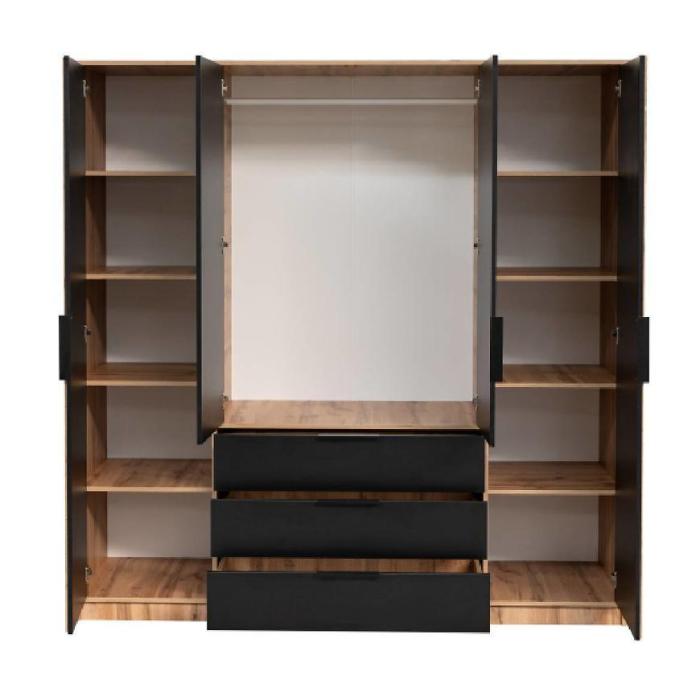 Wygląd szafy Bali zachwyci każdego zwolennika nowoczesnego, a zarazem uniwersalnego stylu. Szafa posiada wystarczającą ilość miejsca na ubrania oraz na inne przedmioty. Jest to niezbędny element wyposażenia w każdym domu, garderobie czy przedpokoju. Materiał wykonania to płyta wiórowa laminowana.