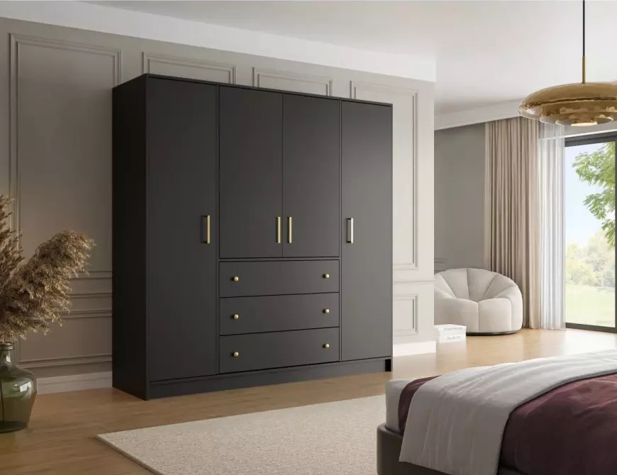 Szafa z drzwiami uchylnymi Bali to doskonały wybór do garderoby, przedpokoju, salonu czy sypialni. Kolor frontów i korpusu sprawiają, że wpasuje się w większość aranżacji. Jej wnętrze jest pojemne i pomieści zarówno ubrania jak i inne akcesoria. Szafa jest 4-drzwiowa.