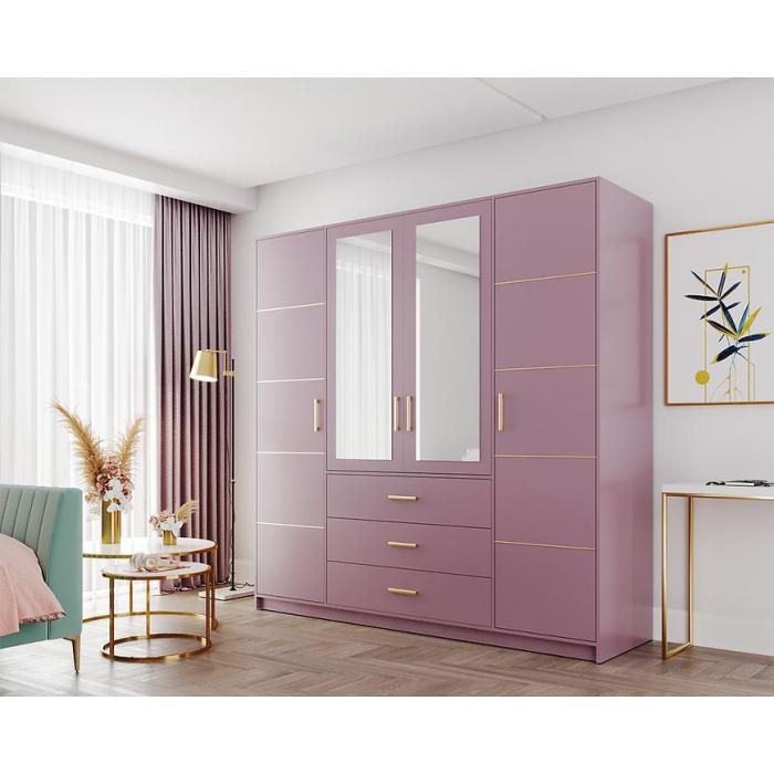 Szafa w kolorze śliwka z kolekcji Bali to doskonała propozycja do pokoju dziennego, ale znajdzie swoje miejsce również w innym pomieszczeniu, jak na przykład - przedpokój czy garderobie, sypialni. Materiał wykonania to płyta laminowana. Szafa posiada półki, drążek na ubrania. oraz szuflady. Duża szafa posiada również lustro, które sprawi, że pomieszczenie stanie się optycznie większe. Mebel będzie świetnym miejscem do wieszania ubrań, na buty lub inne domowe tekstylia. Nowoczesny styl mebli wpadnie do gustu każdemu, kto poszukuje eleganckiego, klasycznego, a zarazem nowoczesnego umeblowania. Idealnie wpasuje się w większość aranżacji. Szafa przeznaczona do samodzielnego montażu.