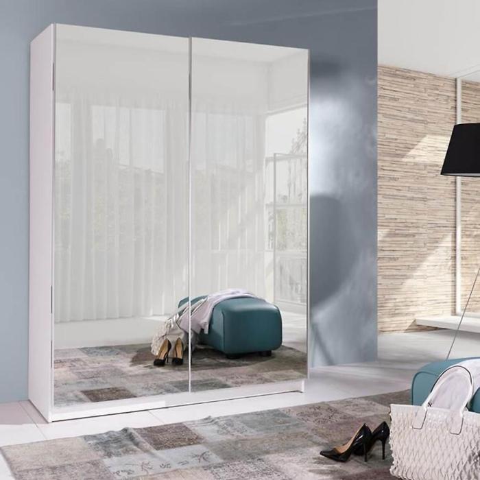 Szafa w kolorze białym to propozycja do pokoju dziennego, ale znajdzie swoje miejsce również w innym pomieszczeniu, jak na przykład - przedpokój czy garderobie. Materiał wykonania to płyta laminowana. Szafa posiada półki oraz drążek na ubrania. Mebel posiada lustro, które sprawi, że pomieszczenie stanie się optycznie większe. Nowoczesny styl mebli wpadnie do gustu każdemu, kto poszukuje eleganckiego, klasycznego, a zarazem nowoczesnego umeblowania. Idealnie wpasuje się w większość aranżacji. Przeznaczona do samodzielnego montażu. Mebel do samodzielnego montażu.