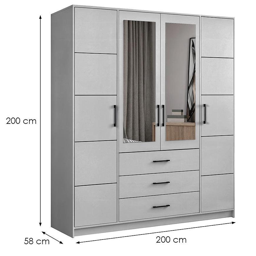 Szafa Belluno 200 to doskonałe rozwiązanie dla osób ceniących styl, funkcjonalność i pojemność. Dzięki nowoczesnemu designowi i praktycznym rozwiązaniom stanie się nieodzownym elementem każdej sypialni, garderoby czy przedpokoju.
