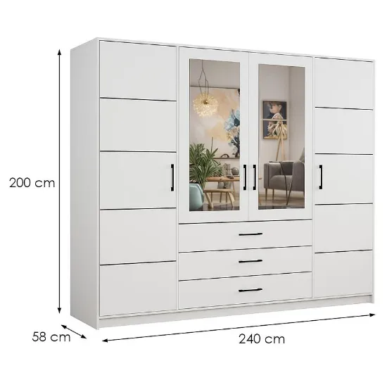 Szafa Belluno 200 to doskonałe rozwiązanie dla osób ceniących styl, funkcjonalność i pojemność. Dzięki nowoczesnemu designowi i praktycznym rozwiązaniom stanie się nieodzownym elementem każdej sypialni, garderoby czy przedpokoju.