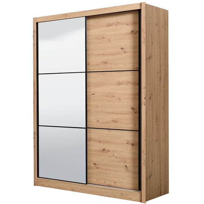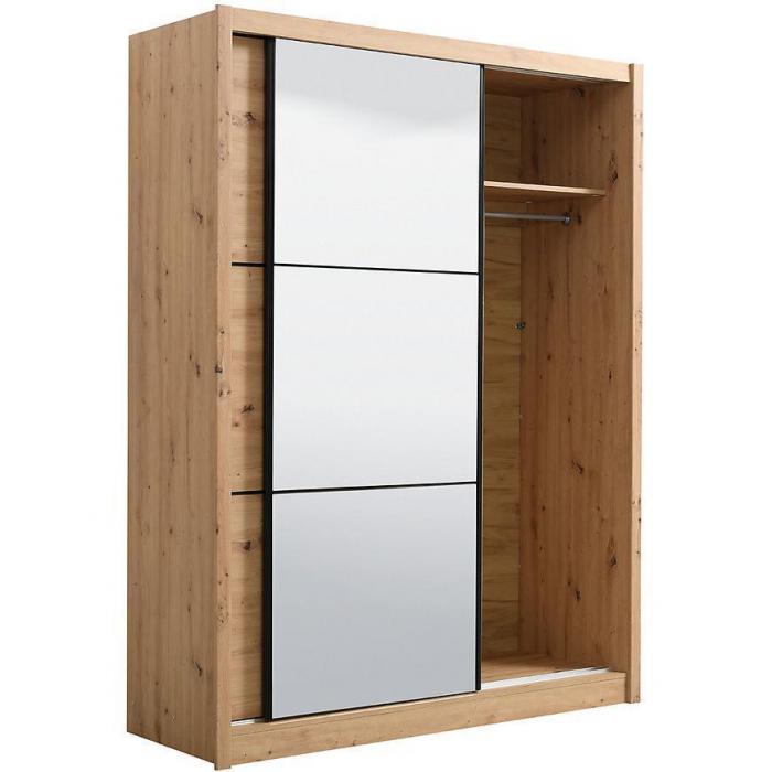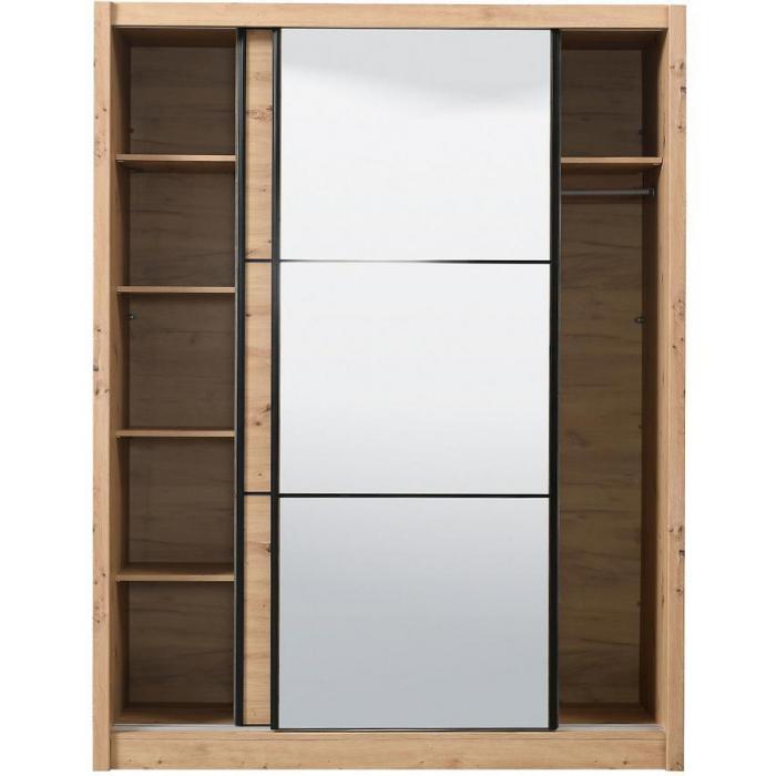 Wygląd szafy Navara zachwyci każdego zwolennika eleganckiego, a zarazem ciekawego stylu. Szafa posiada wystarczającą ilość miejsca na ubrania oraz na inne przedmioty. Jest to niezbędny element wyposażenia w każdym domu, garderobie czy przedpokoju. Materiał wykonania to płyta wiórowa laminowana.