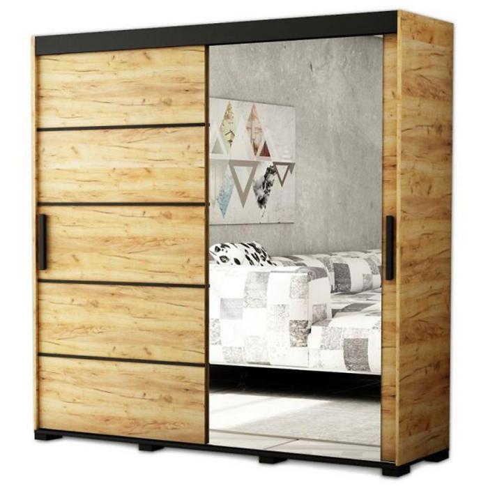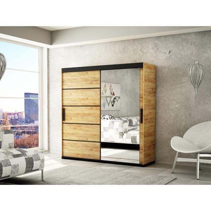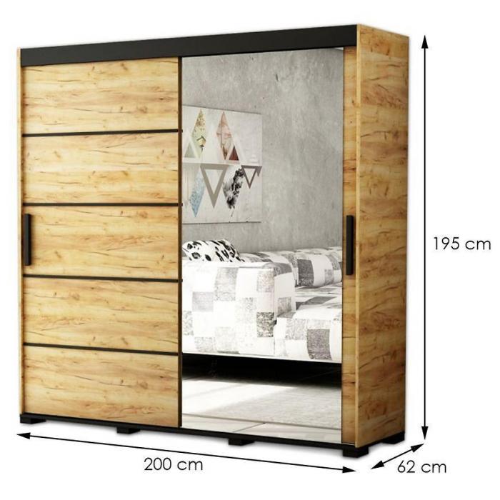 Szafa Bergamo V2 200 Dąb Craft Złoty/Czarny/Lustro