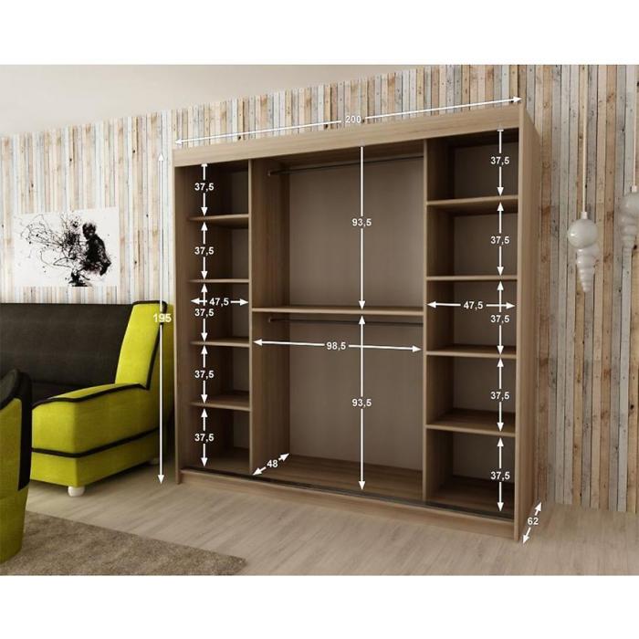 Szafa z drzwiami przesuwnymi Bergamo to doskonały wybór do garderoby, przedpokoju, salonu czy sypialni. Kolor frontów i korpusu sprawiają, że wpasuje się w większość aranżacji. Jej wnętrze jest pojemne i pomieści zarówno ubrania jak i inne akcesoria. Szafa jest 2-drzwiowa oraz posiada lustro, które optycznie powiększy pomieszczenie.