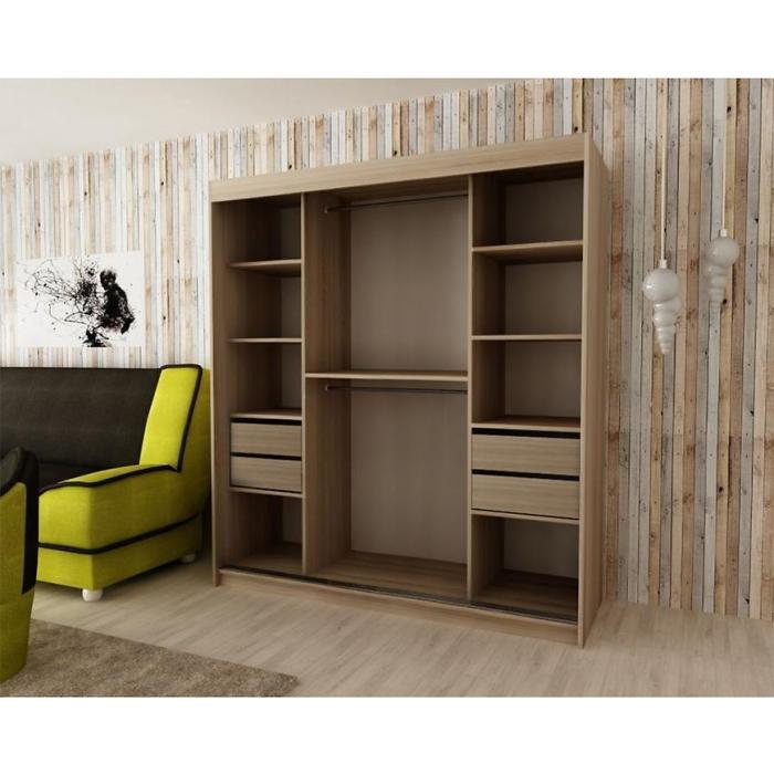 Wygląd szafy Bergamo zachwyci każdego zwolennika eleganckiego, a zarazem ciekawego stylu. Szafa posiada wystarczającą ilość miejsca na ubrania oraz na inne przedmioty. Jest to niezbędny element wyposażenia w każdym domu, garderobie czy przedpokoju. Materiał wykonania to płyta laminowana.