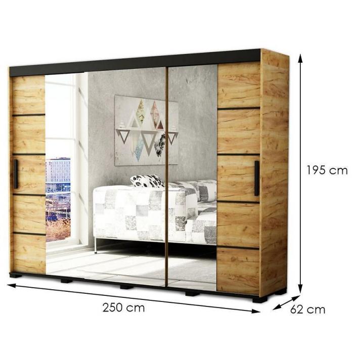 Szafa z drzwiami przesuwnymi Bergamo to doskonały wybór do garderoby, przedpokoju, salonu czy sypialni. Kolor frontów i korpusu sprawiają, że wpasuje się w większość aranżacji. Jej wnętrze jest pojemne i pomieści zarówno ubrania jak i inne akcesoria. Szafa jest 3-drzwiowa oraz posiada lustro, które optycznie powiększy pomieszczenie.