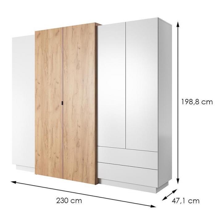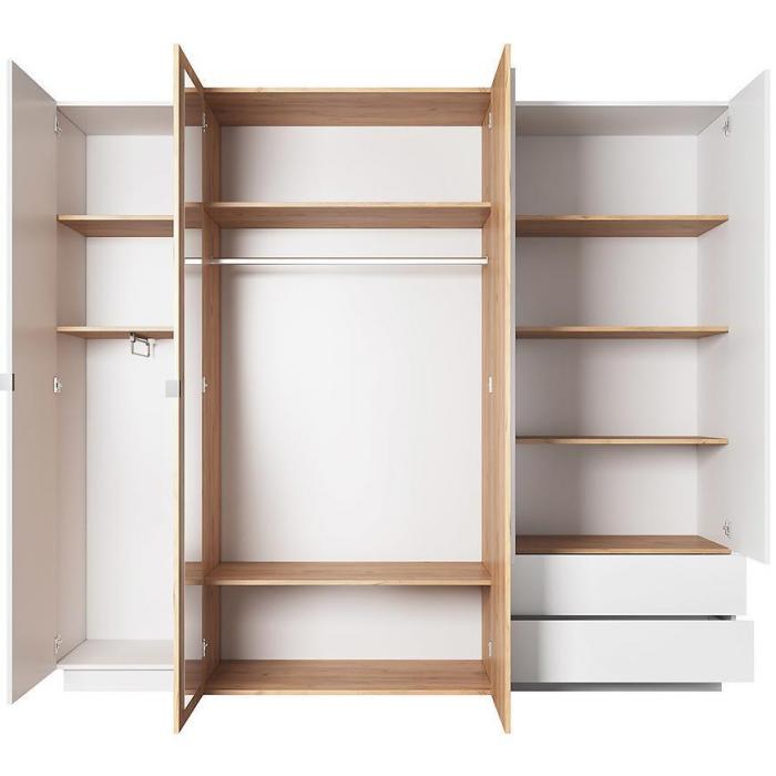Szafa z drzwiami uchylnymi 3d A 230 to doskonały wybór do garderoby, przedpokoju, salonu czy sypialni. Kolor frontów i korpusu sprawiają, że wpasuje się w większość aranżacji. Jej wnętrze jest pojemne i pomieści zarówno ubrania jak i inne akcesoria. Szafa jest 5-drzwiowa.