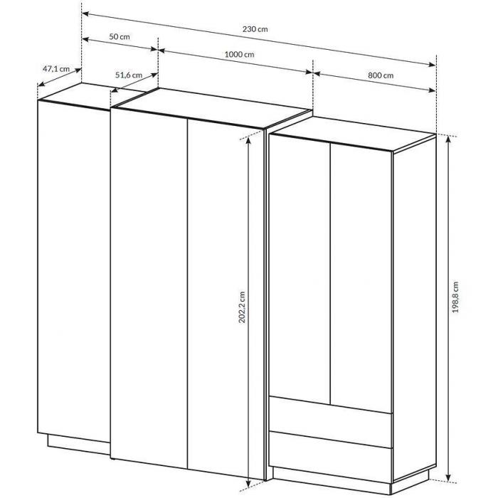 Wygląd szafy 3d A 230 zachwyci każdego zwolennika eleganckiego, a zarazem ciekawego stylu. Szafa posiada wystarczającą ilość miejsca na ubrania oraz na inne przedmioty. Jest to niezbędny element wyposażenia w każdym domu, garderobie czy przedpokoju. Materiał wykonania to płyta laminowana.