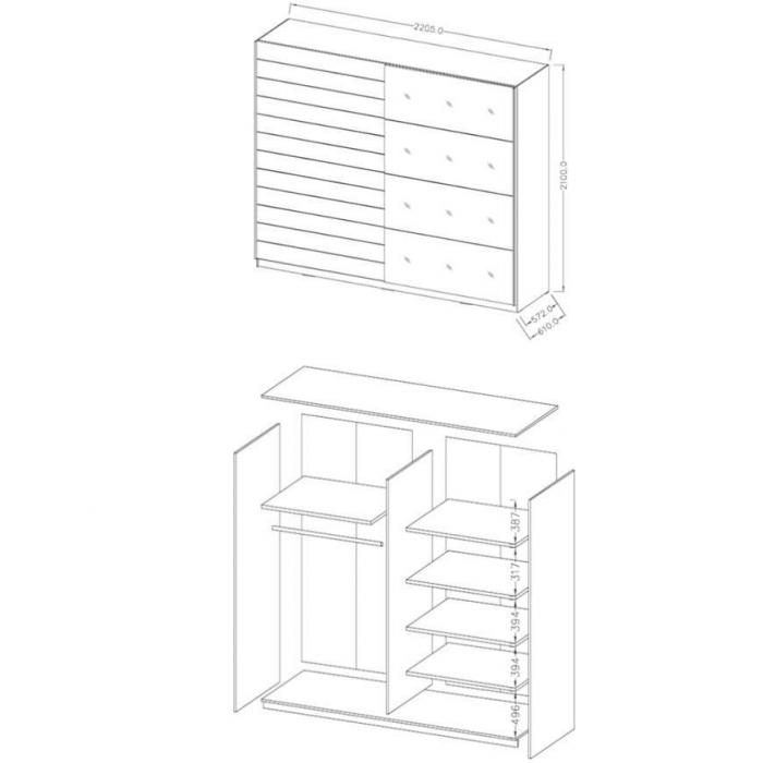 Wygląd szafy Beta zachwyci każdego zwolennika eleganckiego, a zarazem ciekawego stylu. Szafa posiada wystarczającą ilość miejsca na ubrania oraz na inne przedmioty. Jest to niezbędny element wyposażenia w każdym domu, garderobie czy przedpokoju. Materiał wykonania to płyta laminowana.