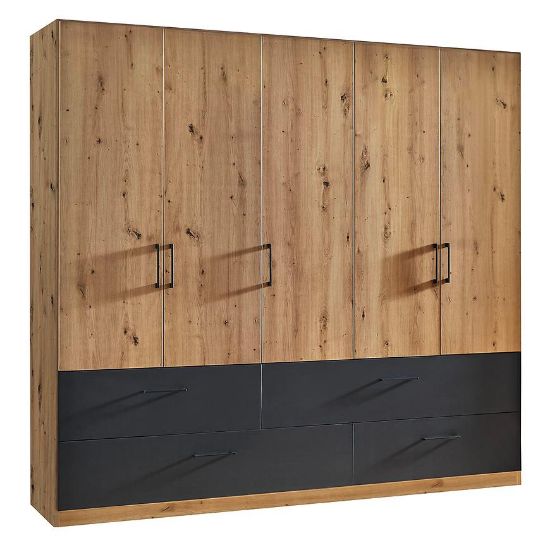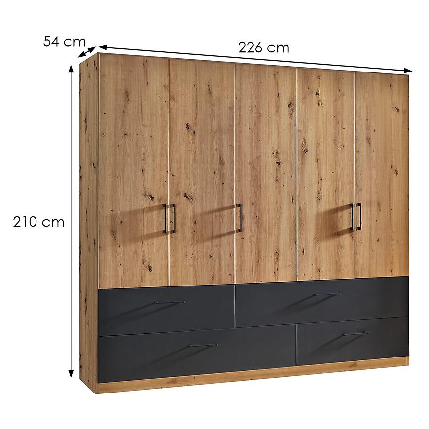 Szafa Bilbao w kolorze szarym/artisan to designerskie i funkcjonalne rozwiązanie do Twojej sypialni. Ta pięciodrzwiowa szafa wyróżnia się nowoczesnym designem, wysoką jakością wykonania oraz praktycznym układem.
