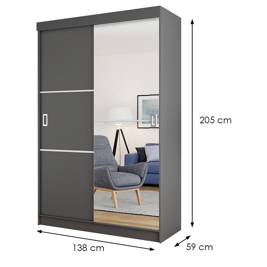 Szafa Bill 2l lustro 138 grafit to doskonała propozycja dla tych, którzy poszukują eleganckiego i funkcjonalnego rozwiązania do przechowywania ubrań. Jej dwudrzwiowa konstrukcja z drzwiami przesuwnymi to efektywne wykorzystanie przestrzeni, co sprawia, że świetnie sprawdzi się nawet w pomieszczeniach o ograniczonej ilości miejsca.