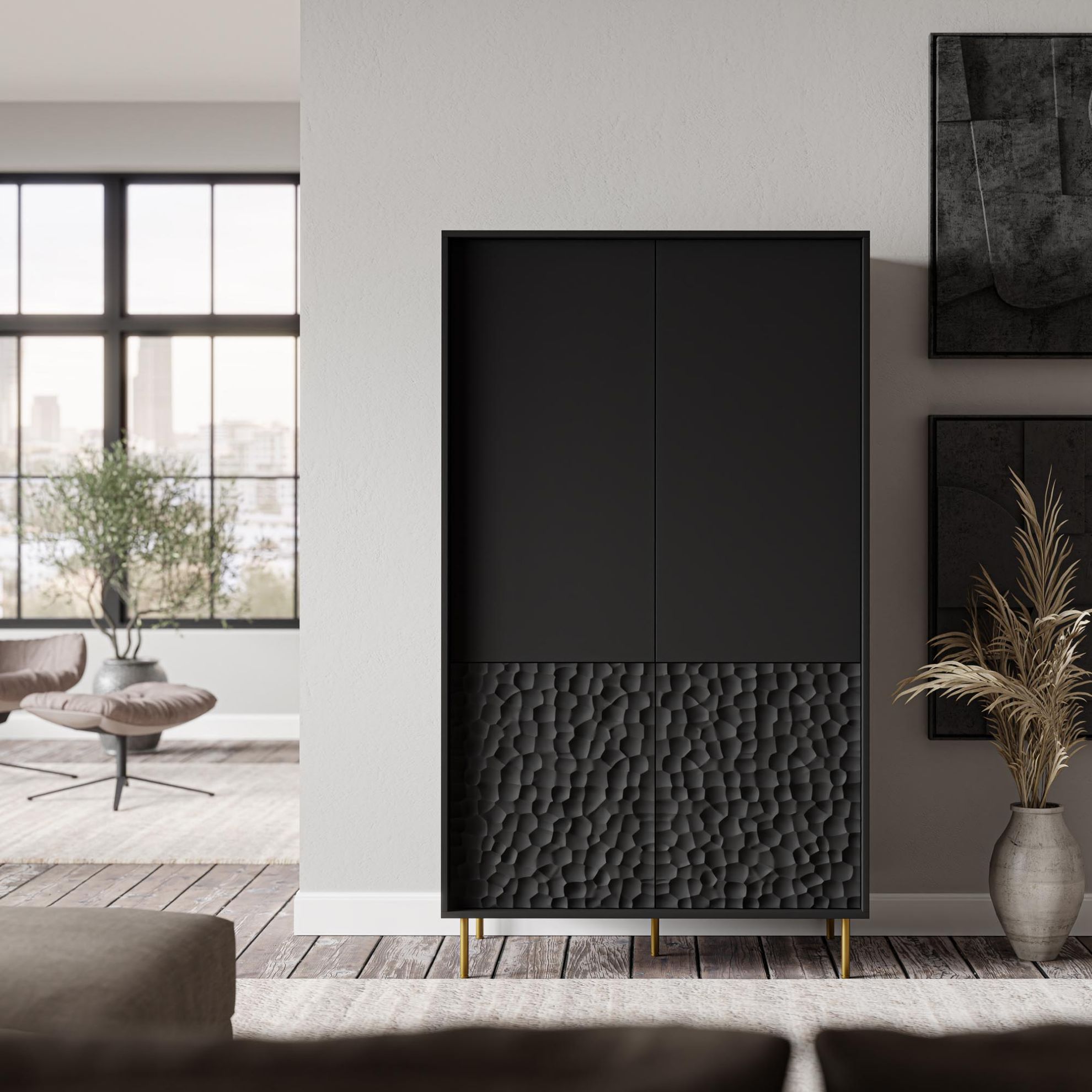 Szafa Blacky 1 to nie tylko praktyczne rozwiązanie do przechowywania ubrań i akcesoriów, ale także designerski element, który wzbogaci aranżację każdej sypialni czy garderoby. Dzięki jej wyjątkowemu połączeniu czerni z subtelnym złotym akcentem, stworzysz wnętrze pełne klasy i stylu.