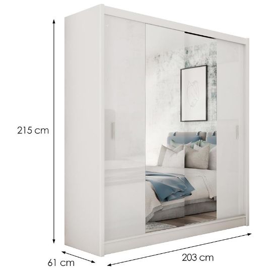 Szafa Blanca 203 w kolorze biały/biały połysk to nowoczesny i elegancki mebel, który doskonale wpasuje się w każde wnętrze, szczególnie w aranżacje o minimalistycznym charakterze. Jej prosta, a zarazem stylowa konstrukcja sprawia, że staje się funkcjonalnym elementem wyposażenia sypialni, garderoby lub przedpokoju. Dzięki przesuwnym drzwiom, szafa zajmuje niewiele miejsca podczas otwierania, co jest szczególnie ważne w mniejszych pomieszczeniach.