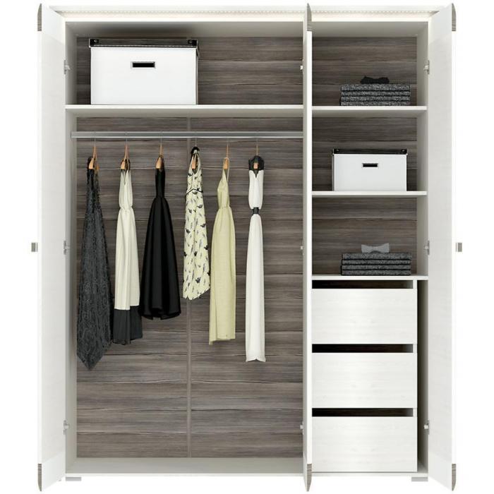 Szafa z drzwiami uchylnymi Blanco to doskonały wybór do garderoby, przedpokoju, salonu czy sypialni. Kolor frontów i korpusu sprawiają, że wpasuje się w większość aranżacji. Jej wnętrze jest pojemne i pomieści zarówno ubrania jak i inne akcesoria. Szafa jest 3-drzwiowa oraz posiada lustro, które optycznie powiększy pomieszczenie..