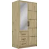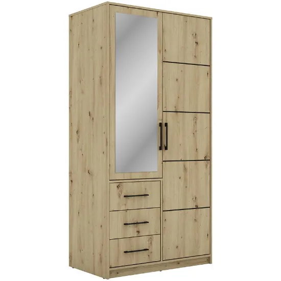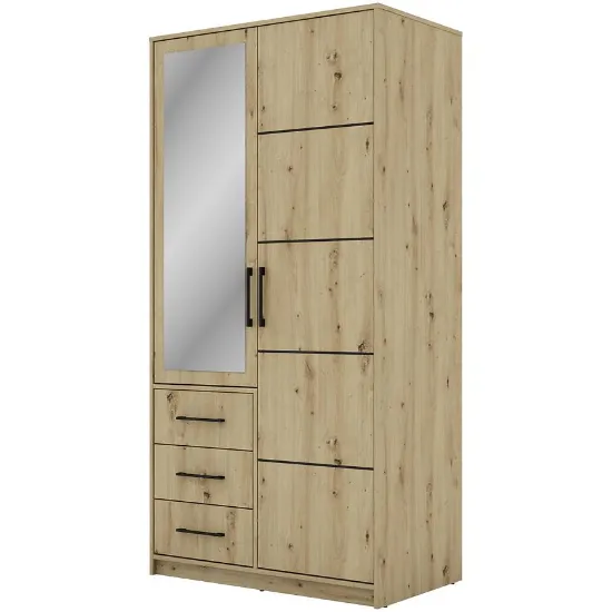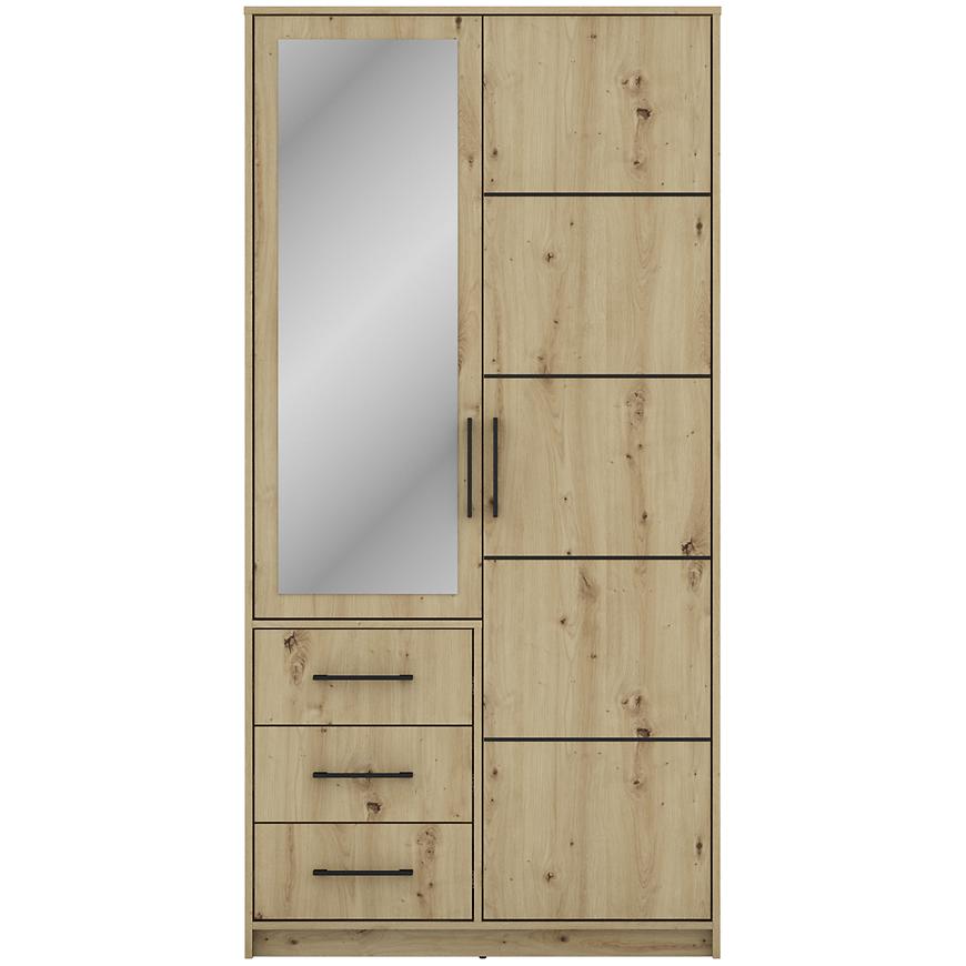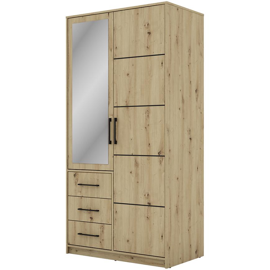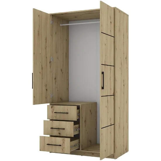 Szafa wyróżnia się atrakcyjnym wybarwieniem w odcieniu artisan, które nadaje wnętrzu ciepły i elegancki charakter. Solidna konstrukcja wykonana z trwałych materiałów gwarantuje długowieczność mebla, a przemyślany układ umożliwia wygodne przechowywanie.