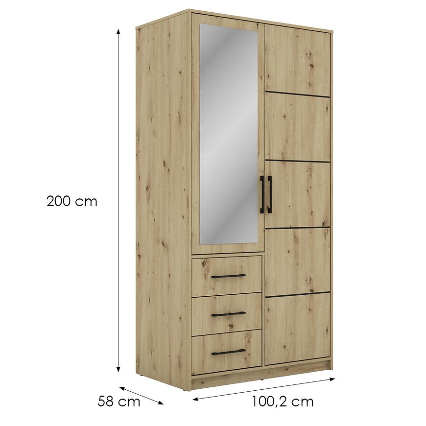 Szafa Bollate 2 Artisan to połączenie nowoczesnego designu z funkcjonalnością, idealne do każdej sypialni, przedpokoju lub garderoby. Jej wymiary – 200,1 cm wysokości, 100,2 cm szerokości i 58 cm głębokości – zapewniają dużą pojemność, dzięki czemu bez trudu pomieścisz ubrania, dodatki i inne niezbędne przedmioty.
