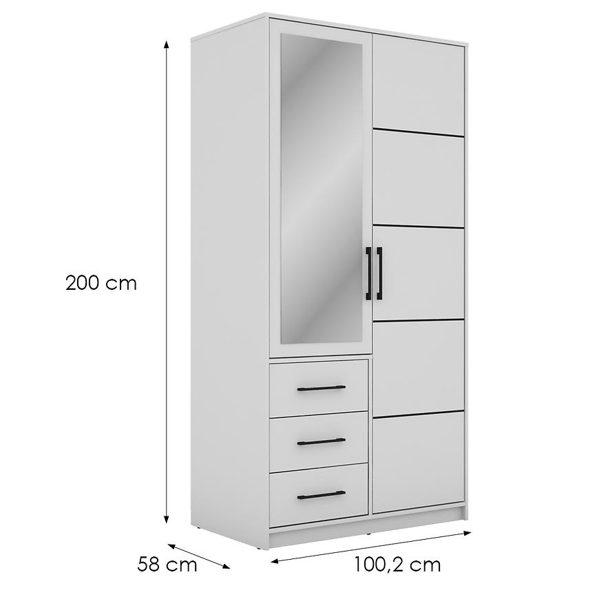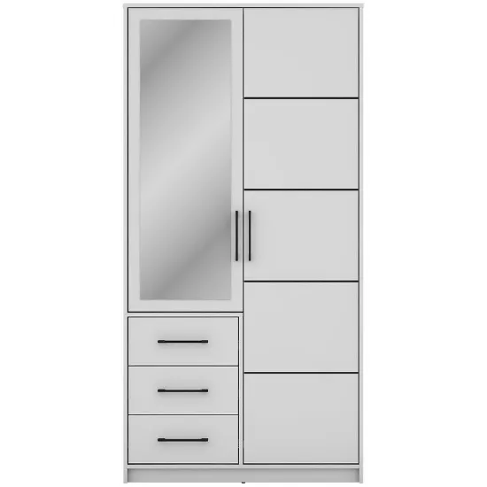 Szafa została zaprojektowana z myślą o maksymalnej funkcjonalności i estetyce. Wytrzymały materiał konstrukcyjny zapewnia nie tylko długowieczność, ale także odporność na codzienne użytkowanie. Przemyślany układ umożliwia łatwe i wygodne przechowywanie rzeczy, zachowując porządek w każdej przestrzeni.