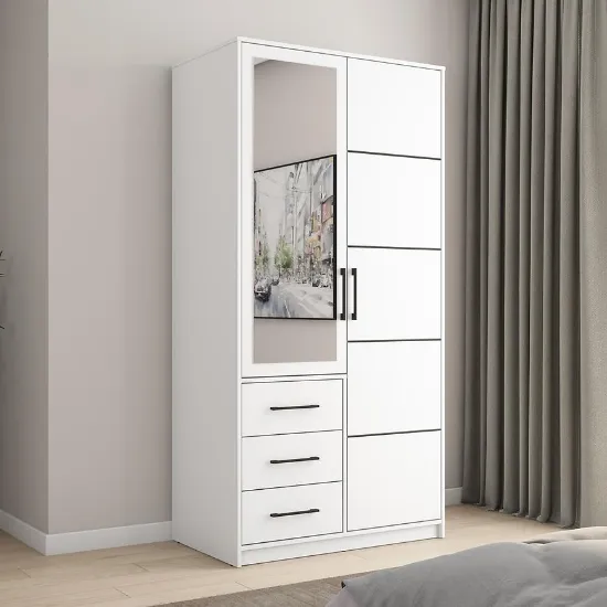 Szafa Bollate 2 Biała to mebel, który łączy elegancki wygląd z funkcjonalnością, będąc idealnym rozwiązaniem do sypialni, przedpokoju czy garderoby. Wzbogać swoje wnętrze o ten stylowy i praktyczny mebel, który wprowadzi porządek i harmonię!