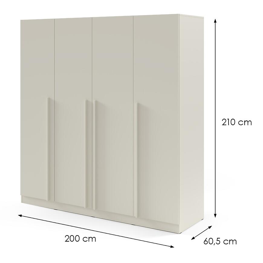 Szafa Braga 1 bez szuflad w kolorze kaszmir to praktyczne i estetyczne rozwiązanie dla osób, które cenią porządek oraz nowoczesny styl wnętrz. Dzięki szerokości 200 cm oferuje dużą przestrzeń do przechowywania ubrań, akcesoriów i tekstyliów, co czyni ją idealnym wyborem zarówno do sypialni, jak i garderoby.