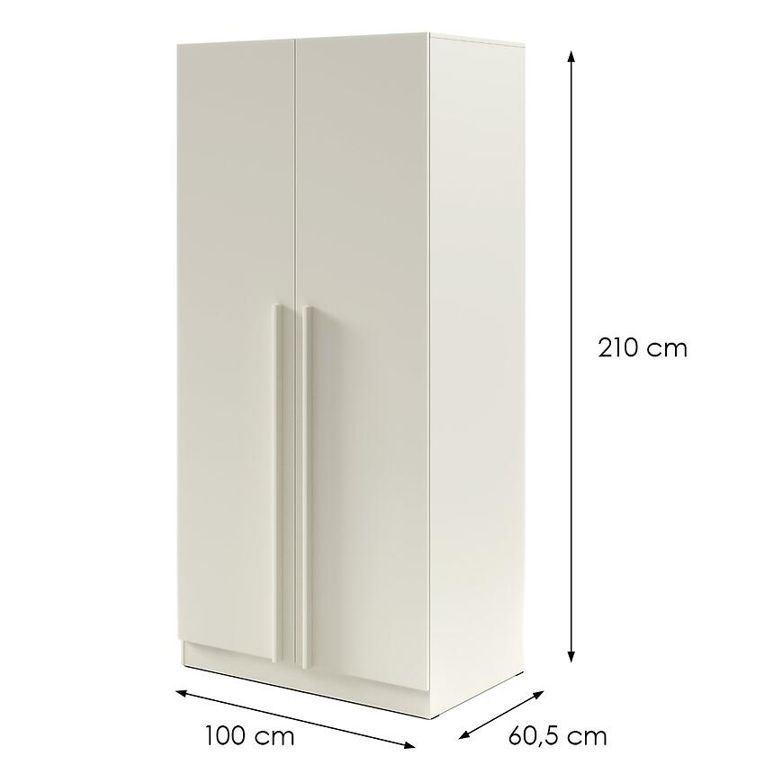 Szafa o wysokości 210 cm i głębokości 60,5 cm zapewnia komfortowe przechowywanie odzieży o różnej długości. Klasyczne drzwi umożliwiają łatwy dostęp do całej zawartości, co sprawdza się szczególnie w codziennym użytkowaniu.