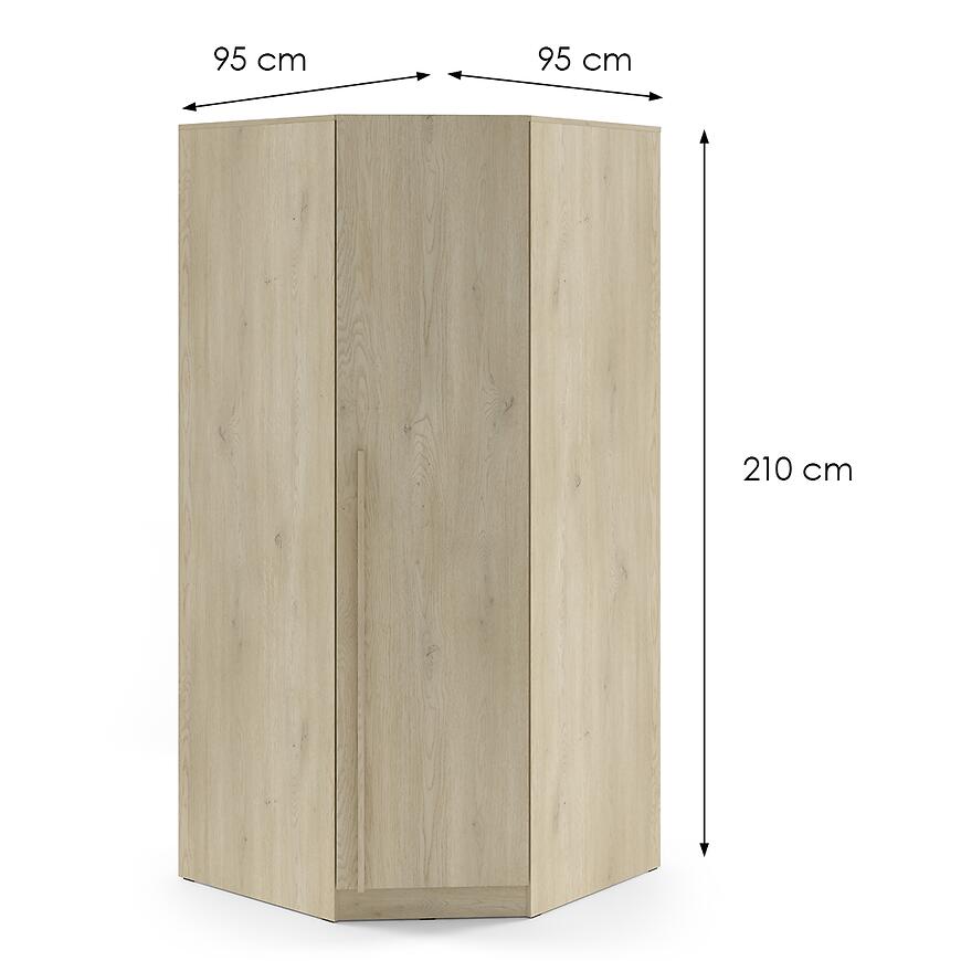 Szafa Braga 4 w kolorze dąb cremona to narożna propozycja, która łączy nowoczesny design z funkcjonalnością. Jej wymiary – 95 cm szerokości, 210 cm wysokości i 95 cm głębokości – sprawiają, że idealnie wpasuje się w różnorodne przestrzenie, od sypialni po pokój młodzieżowy. Jednodrzwiowa konstrukcja z klasycznymi drzwiami zapewnia łatwy dostęp do przechowywanych ubrań i dodatków.